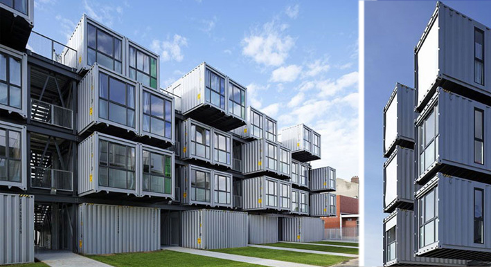 דוגמא לשימוש במכולות למעונות סטודנטים באמסטרדם. פרויקט שהתחיל במהוסס, נחל הצלחה אדירה והפך לעיר המכולות הגדולה בעולם. (Keetwonen)