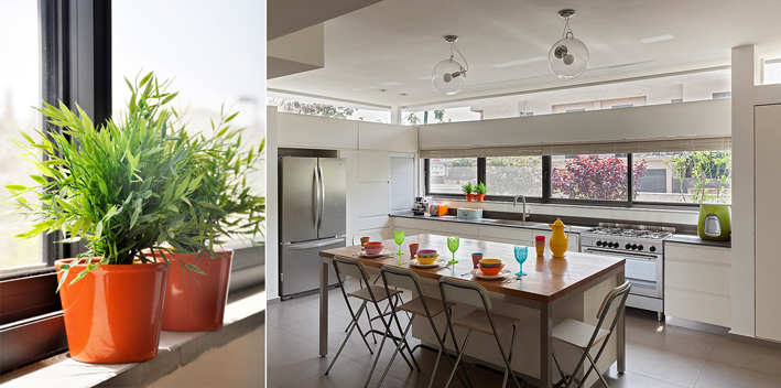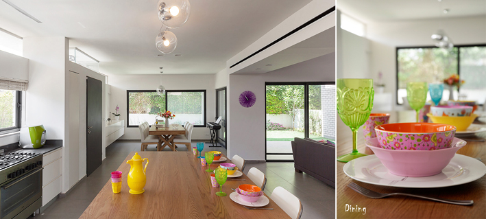 הבית תוכנן כך שניתן 'לפתוח שולחן' (פשוטו כמשמעו) מהמטבח ועד לפינת האוכל כ – 8.50 מ' או מפינת האוכל ועד לפינת הישיבה בחוץ. (דרך הויטרינות) כ- 10 מ'. א' ו א' חלמו על בית בו מכל עבר אפשר להרגיש את החוץ. רצו גינה משמעותית ככל האפשר.