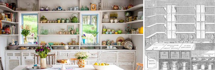 תוך כדי עבודה על הפוסטים בנושא האבולוציה של המטבח, העלתה קרן שביט (אין צורך להציג, נכון?) תמונות של המטבח החדש שלה. חברתה מירב אייכלר (הלא היא הלוחשת לבתים) הפנתה את תשומת ליבי לדמיון שבין הסקיצה של Catharine Beecher משנת 1843 (!) למטבח של קרן. (צילום: סיון אסקיו).