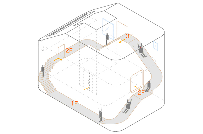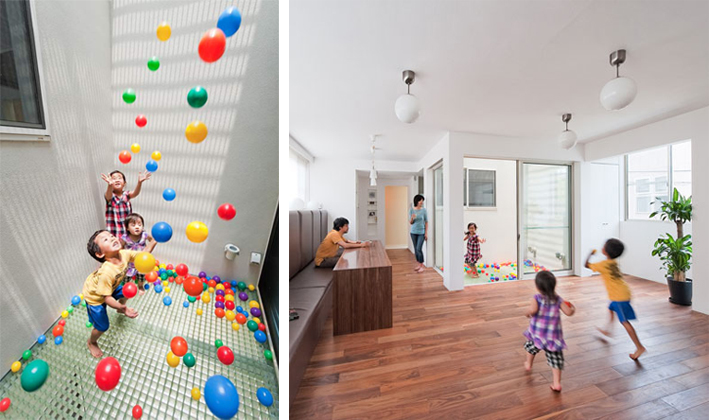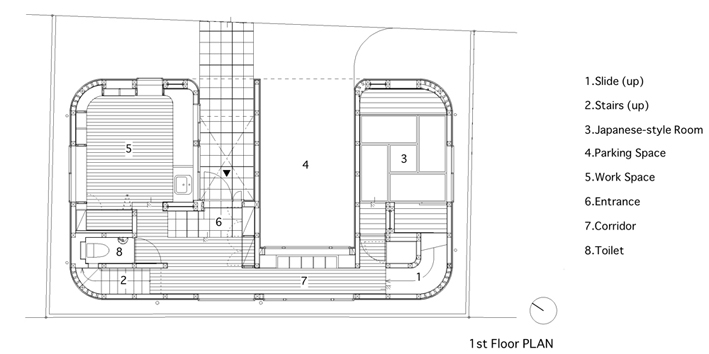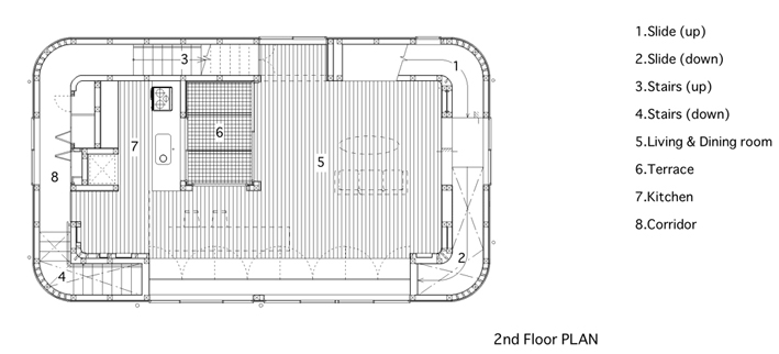 מביאה כאן דוגמא לבית מקסים בטוקיו, יפן. משרד האדריכלים level architects יצר בית עם שתי מערכות סירקולציה, האחת: מדרגות קונבנציונליות והשניה: מגלשות. כן, כמו של ילדים.