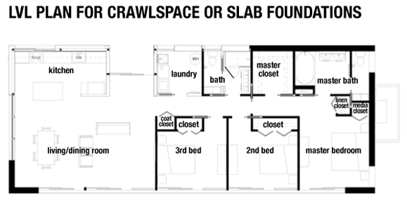 בדגם ה-LVL יש תוספת של 30 מ"ר, כלומר שלושה חדרי שינה, מטבח, פינת אוכל חדר מגורים, 2 אמבטיות וחדר כביסה.