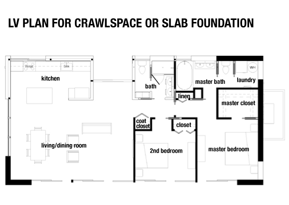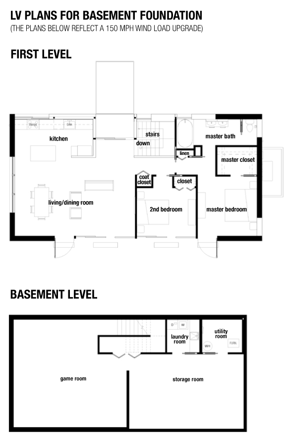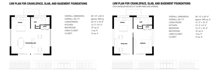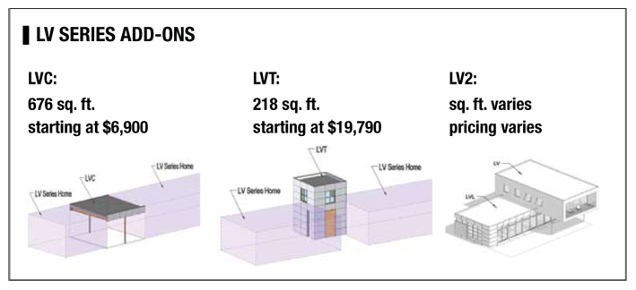 הדגם הבסיסי הוא ה-LV: מפלס קרקע בן 125 מ"ר המכיל חלל ציבורי: מטבח, פינת אוכל וחדר מגורים, שירותי אורחים או מדרגות למרתף ושני חדרי שינה (אחד מהם master bedroom).